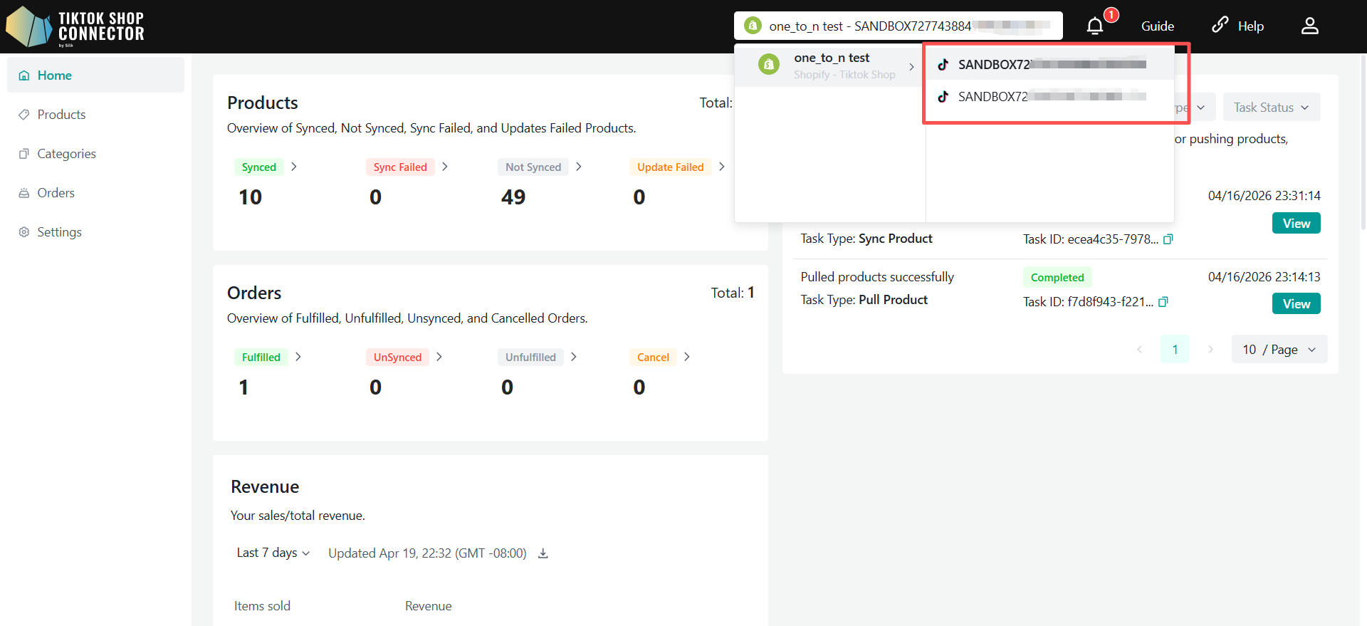 Nota: Para sincronizar los pedidos de TikTok Shop a Shopify con éxito, tus productos deben estar vinculados desde Shopify a TikTok Shop a través de nuestro Conector. Cualquier pedido que contenga productos no sincronizados NO se sincronizará nuevamente con Shopify.