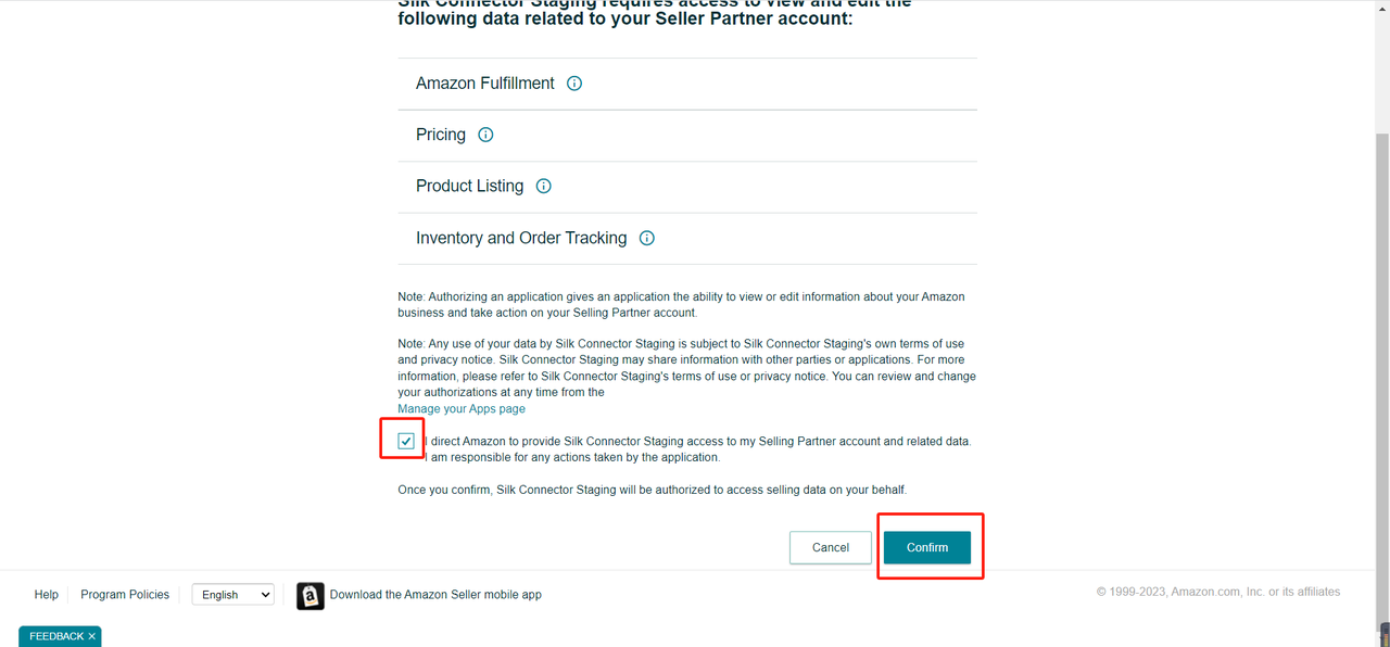 - Kliknij „confirm” na stronie autoryzacji Amazon.