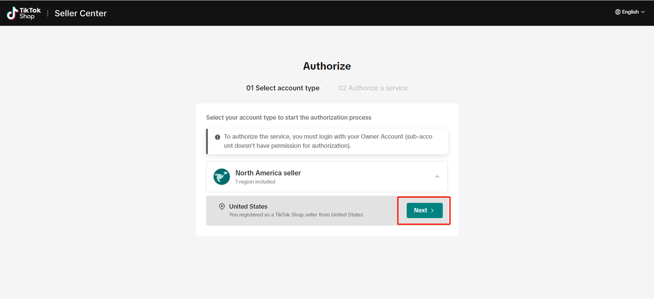 Kliknij „North America Seller” -> Next