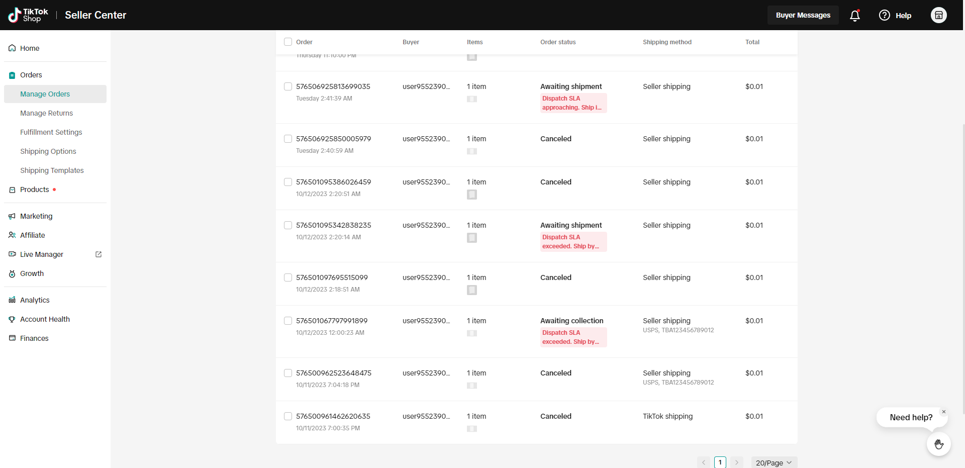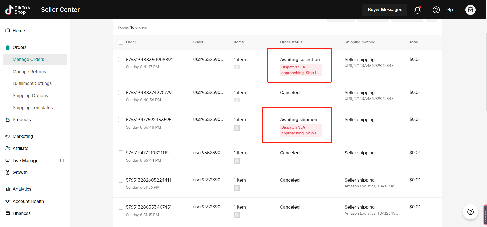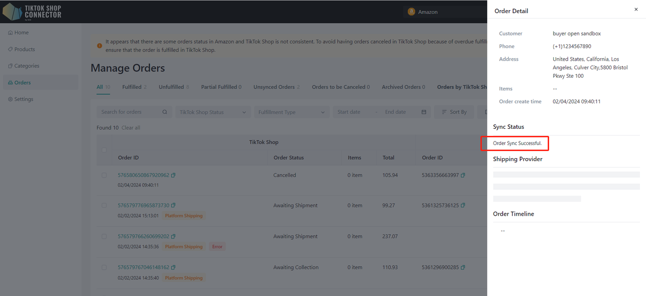 Uwaga: możemy wyszukiwać i synchronizować tylko zamówienia ze statusem „awaiting shipment”. Zamówienie nie zostanie wyszukane, jeśli ma już status TikTok Shop: awaiting collection, completed, cancelled itd.
