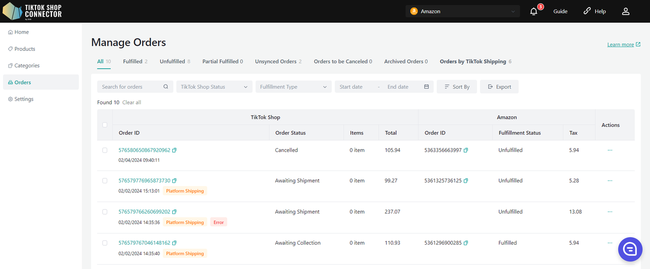 - Shipping Option Mapping: zmapuj opcję wysyłki w TikTok Shop do poprawnego formatu w Amazon. Dzięki temu opcja wysyłki będzie poprawnie przenoszona między platformami.