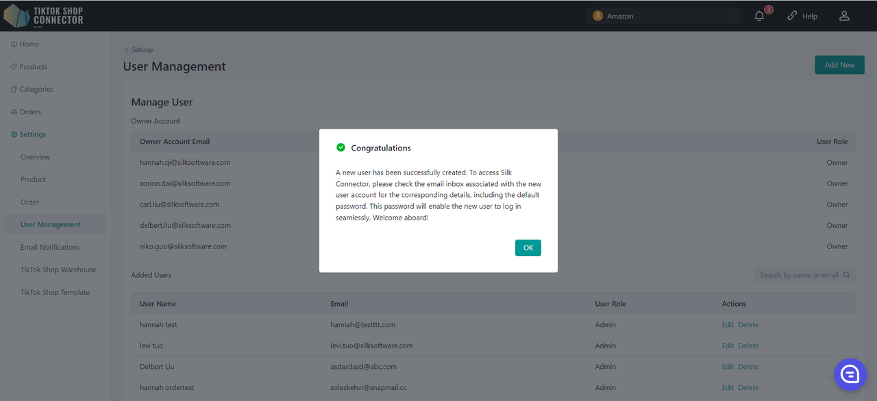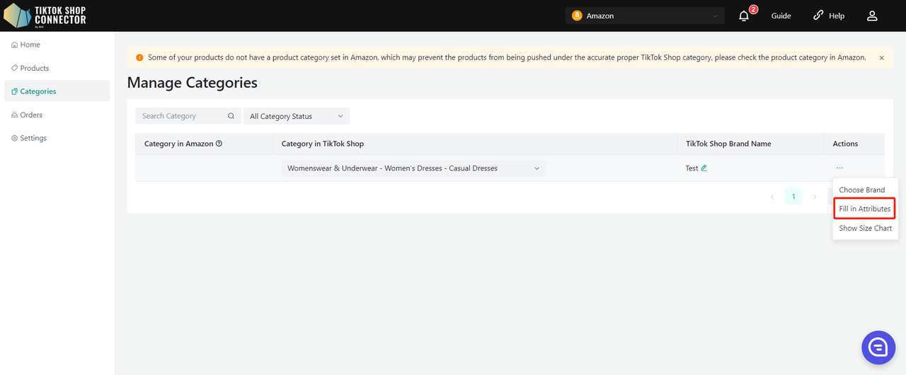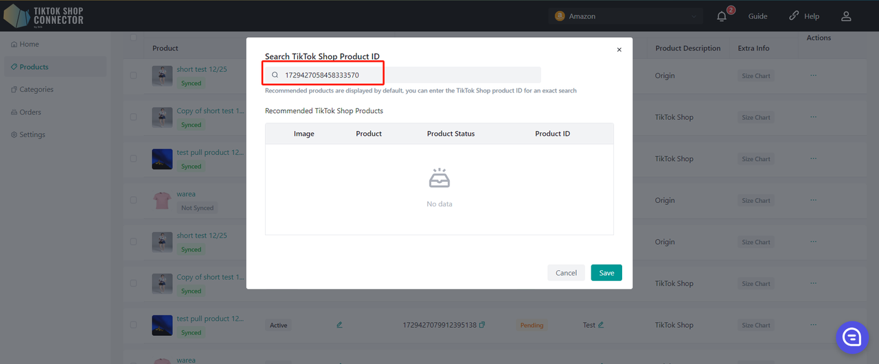 Jeśli ręcznie dodałeś(-aś) produkt w TikTok Shop, zmapuj istniejący produkt TikTok Shop z produktem Amazon przez Connector. Dzięki temu produkty w Amazon i TikTok Shop będą dopasowane, a zamówienia będą mogły się synchronizować.