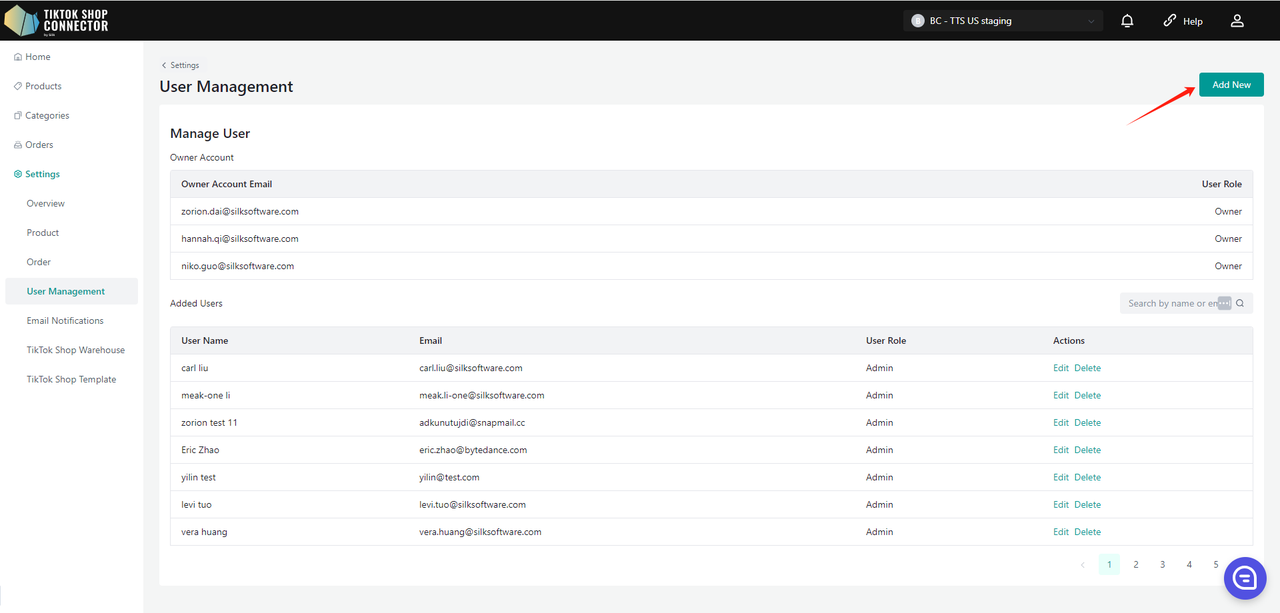 Wyświetla wszystkich użytkowników utworzonych w Silk Connector