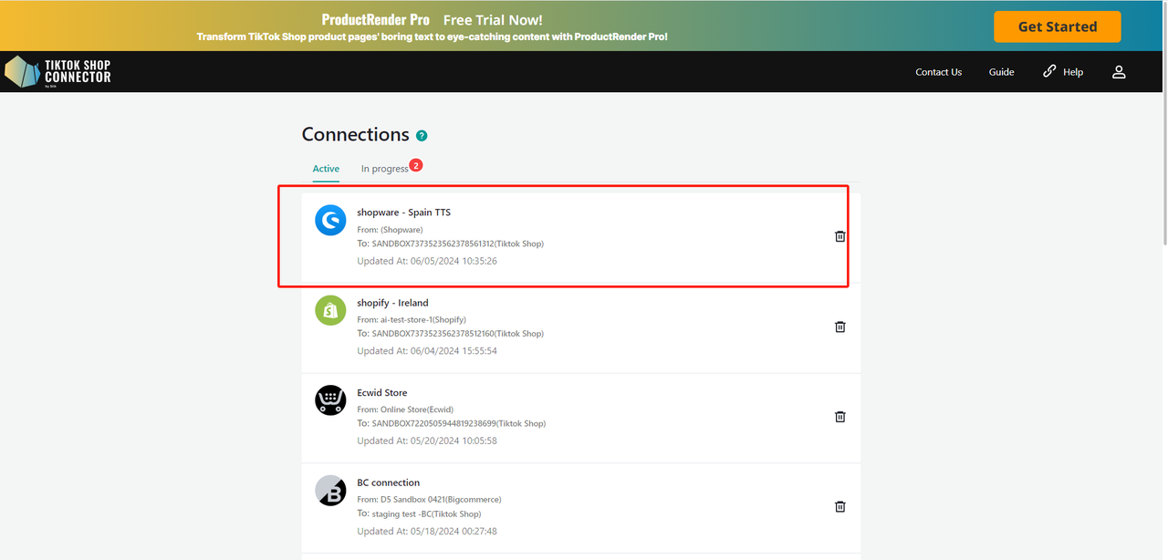 Kliknij swoje połączenie, aby rozpocząć synchronizację produktów.