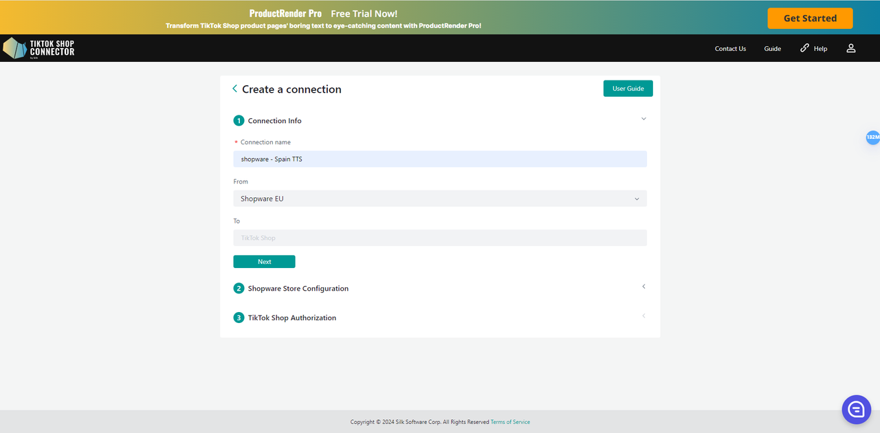 Pierwszym krokiem, aby rozpocząć synchronizację produktów z Shopware do TikTok Shop, jest utworzenie konta w Silk!