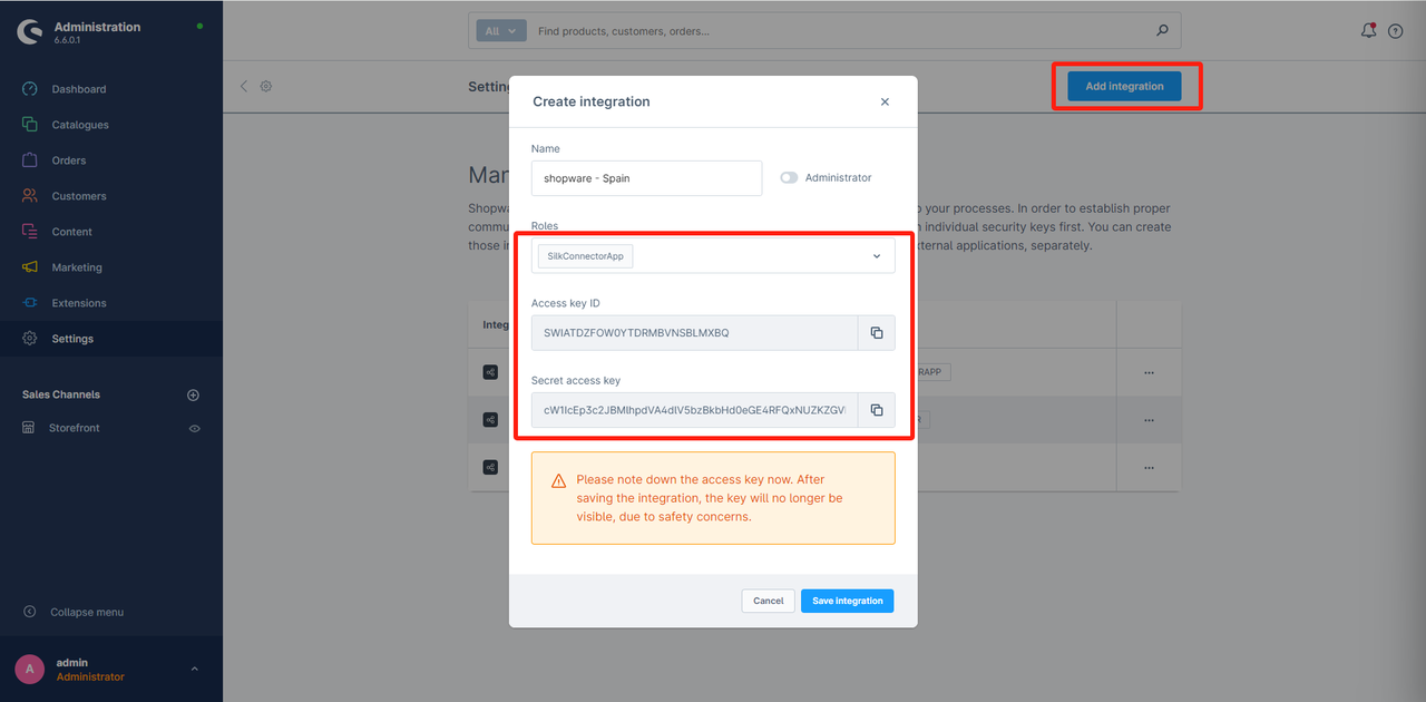 Skopiuj Access key oraz secret access key do Silk Connector. (Zapisz Access key już teraz. Po zapisaniu integracji klucz nie będzie już widoczny ze względów bezpieczeństwa.)