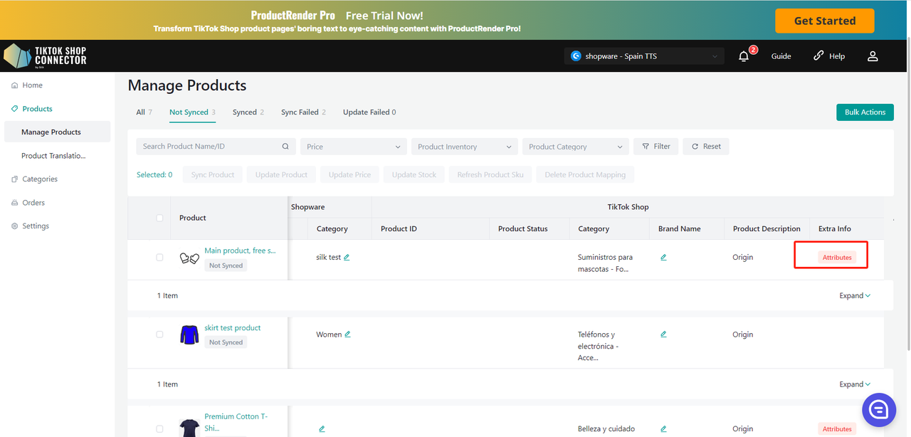 Selected Banner -> Sync Products