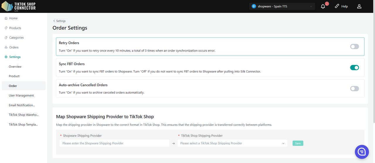 "Map Shopware Shipping Provider to TikTok Shop"